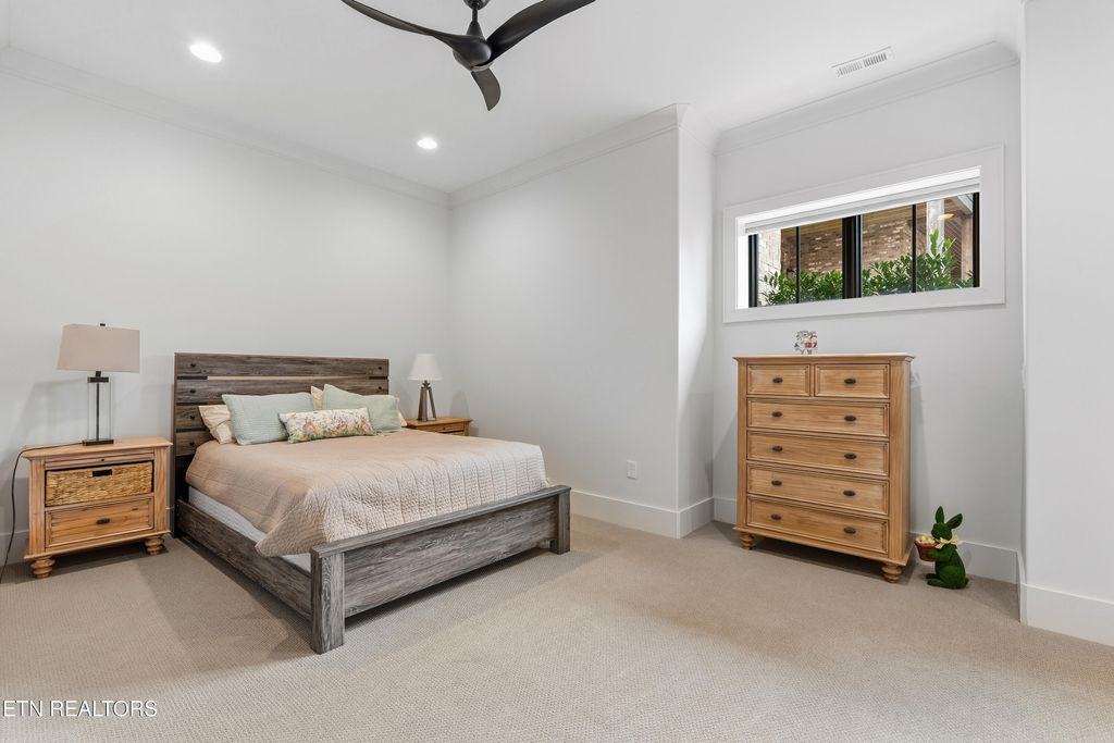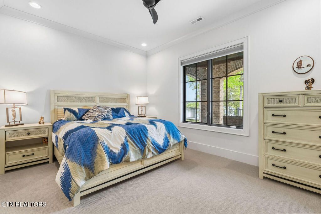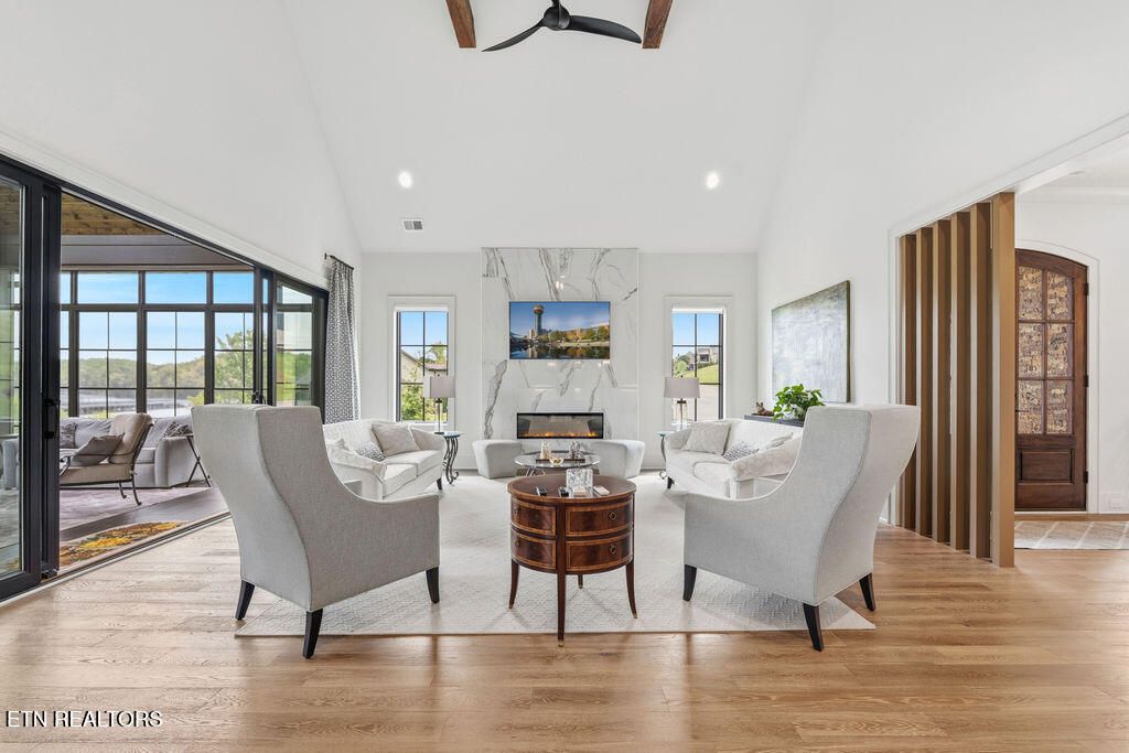 Introducing a beautifully crafted 2023 custom lakefront home in WindRiver, East Tennessee's premier lake and golf community on Tellico Lake. Built by premier builder Joseph Houck, this exceptional lakefront residence offers nearly 4,700 square feet of thoughtfully designed living space featuring 4 bedrooms plus an office and flex room, 3.5 bathrooms, a 2.5-car garage, and additional storage rooms. The open-concept main level showcases vaulted ceilings, engineered hardwood floors, and high-end finishes throughout, blending modern transitional design with comfortable everyday living. The gourmet kitchen is ideal for entertaining with a large island, Thermador appliances, quartz countertops, and a spacious walk-in pantry. Main-level living includes the primary suite and office, while the expansive four-season sunroom captures beautiful views of Tellico Lake. Premium features such as a private elevator, hidden safe room, and sauna provide added convenience, security, and wellness. The lower level offers three additional bedrooms, two full bathrooms, a flex room, and access to an expansive outdoor living area featuring a 17-foot swim spa and private putting green--a perfect setting for hosting guests and enjoying the lakefront lifestyle. The luxurious primary suite on the main floor includes bay windows overlooking the lake, a vaulted architectural ceiling, heated bathroom floors, and a spacious walk-in closet. Located behind the gates of WindRiver, residents enjoy access to a championship golf course, private marina, resort-style pool, tennis and pickleball courts, fitness center, scenic walking trails, onsite dining, and 24/7 gated security, with a new 25,000+ sq ft clubhouse village opening in 2026. Conveniently situated near Knoxville, approximately 25 minutes to McGhee Tyson Airport and 37 minutes to Neyland Stadium. This exceptional WindRiver lakefront home offers the perfect blend of luxury, privacy, and an active lake-and-golf lifestyle on Tellico Lake. Schedule your private showing today.