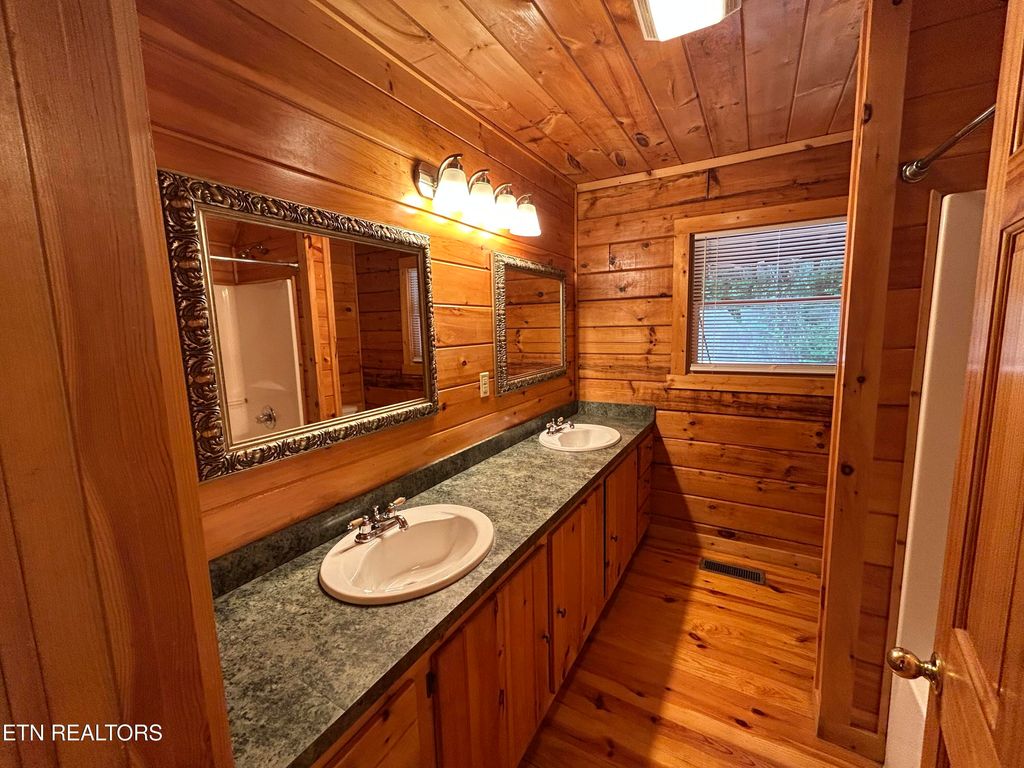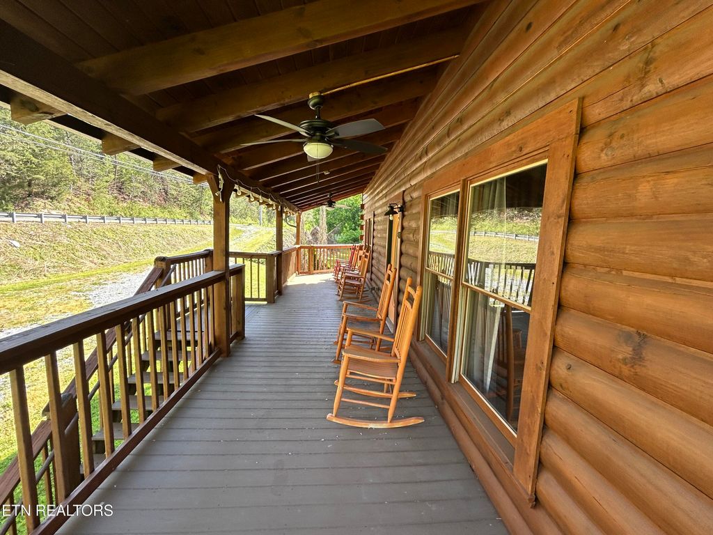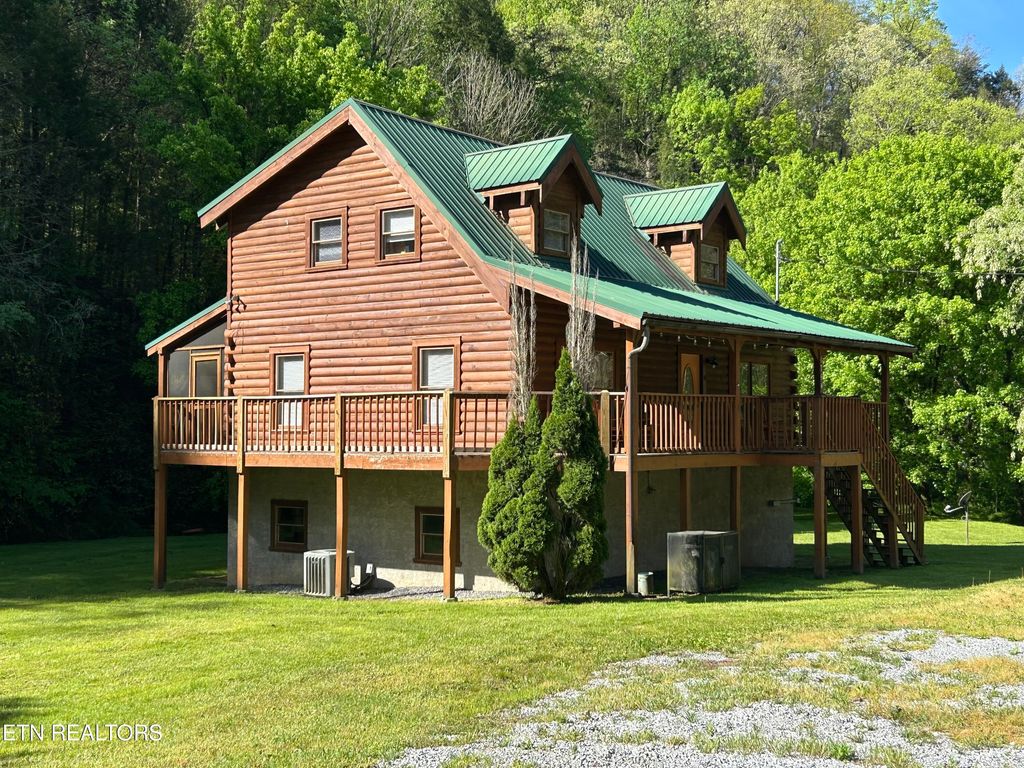 Cozy Log Cabin sitting on 21.01 Acres. Unrestricted opportunity for a nice Cabin Rental of prime for development. 3 Bedrooms, 2 full baths. Family room is vaulted and aloft overlooking it all. Enjoy a full wrap around porch, partially screened and overlooking an active mountain stream. Dollywood is a short 10 minute drive away and plenty of attractions, shopping and excellent restaurants nearby. Easy to show.