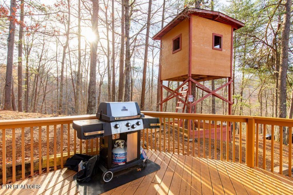 Step outside and take in the scenery from the expansive wrap-around deck, partially covered for year-round enjoyment. Start your mornings with coffee overlooking the mountains, and end your evenings gathered around the fire pit under the stars. A unique treehouse adds a fun and memorable touch for guests of all ages.