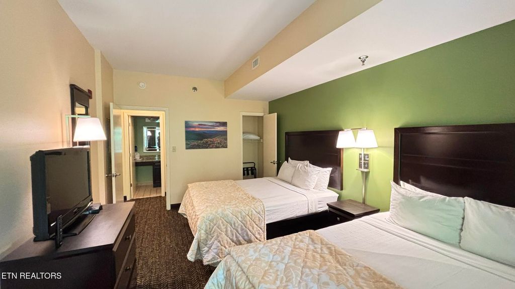 The Resort at Governors Crossings offers owners and their guests the ultimate resort experience. This is a fully furnished, 2 bedroom and two full baths. the primary bedroom is spacious, and the guest bedroom offers 2 beds. The open living room has a pull-out sofa bed and plenty of room for everyone. The kitchen is fully loaded and has a wonderful breakfast bar. No need for a common laundry as this unit has a stacked washer and dryer. The Resort itself cannot be beat. There are 3 waterslides, a lazy river, outdoor pool that offers a cabana rental as well as a snack bar, then there is the indoor pool, game room, picnic area, fitness center, playground and much much more. The HOA fee includes, insurance, basic cable and internet, insurance, garbage pickup, in house maintenance, and more. use it for your own vacation and then let it pay for itself with overnight guests. Seller does own two other 2/2 units at this Resort and will entertain a package deal with an acceptable offer.