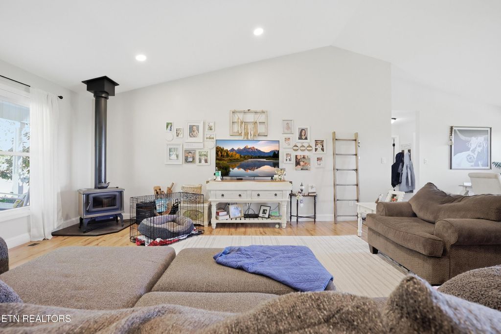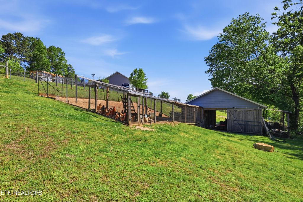 Available for showings Friday! More photos coming soon! Great, well-maintained home on just over 4 acres ready for your mini farm or homestead goals! The outside of the property holds a greenhouse for growing your produce all year long, a fenced in, over 3-acre field with a barn, and owner is willing to leave a flock of chickens with the home! The home itself provides a multitude of different options. On the main level you will find the open living room and kitchen with a wood burning stove, with a gorgeous back deck off of the kitchen to enjoy views of the Smokies and the quiet Grainger County evenings. On the rest of the main level, you will find the laundry room, spacious upper garage, master suite with en-suite bath and walk in closet, the two guest bedrooms as well as the guest bathroom. On the lower level you will find a flex room that can be used as an office or workout area with a half bath, and the basement garage that is over 700 square feet. Buyer and/or buyer's agent to verify.