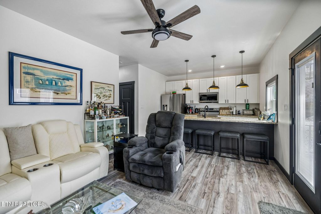 Maintenance Free Community Living in beautiful and historic Rocky Top, TN! This FULLY FURNISHED Cottage has Kitchen updated Smart Appliances, granite counter tops, Samsung Refrigerator, microwave, dishwasher, Air Fry Smart Stove & Full Size Samsung Washer & Dryer included. This home boasts 9ft ceilings making the space feel much larger. Living Rm with electric fireplace & 82'TV with comfortable seating.