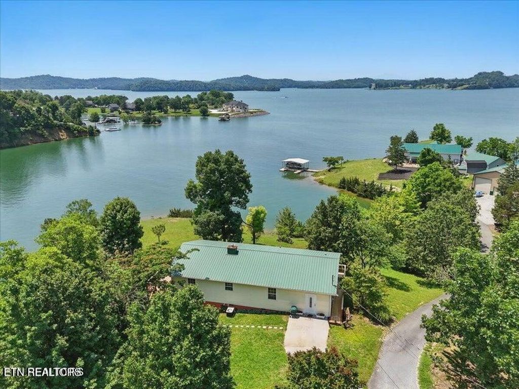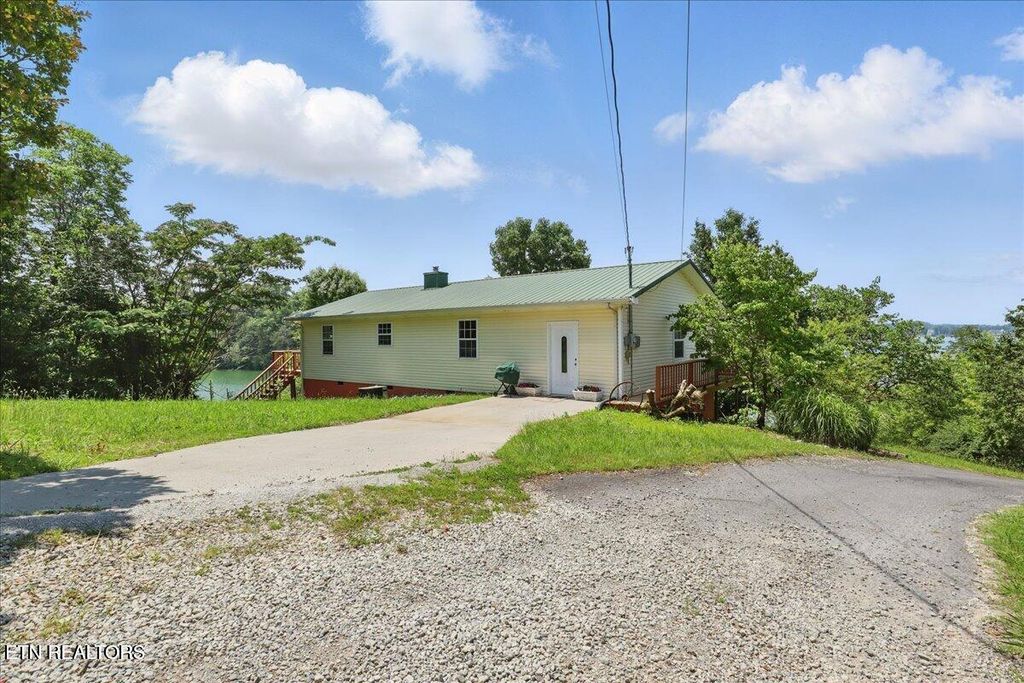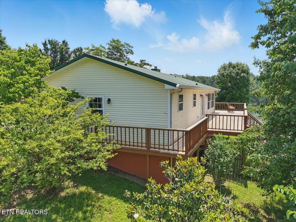 Doulgas Lakefront Home with gentle sloping property, lake and Mtn views with incredible sunsets, one level living, deep water with nice bottom for swimming and wading, dual fuel hvac, huge wrap-around deck to enjoy views, peaceful and quiet setting, tva dock permit, great full time home or weekender/get-away. Convenient location to Severiville, Pigeon Forge, Gatlinburg, and Smoky Mountains. Recent interior paint. Wireless solar security system. Trilight Internet. Located on dead-end road. Quiet and peaceful setting. 50' x 60' dog pen, small shed, iris bed, cast iron tub, and much more!