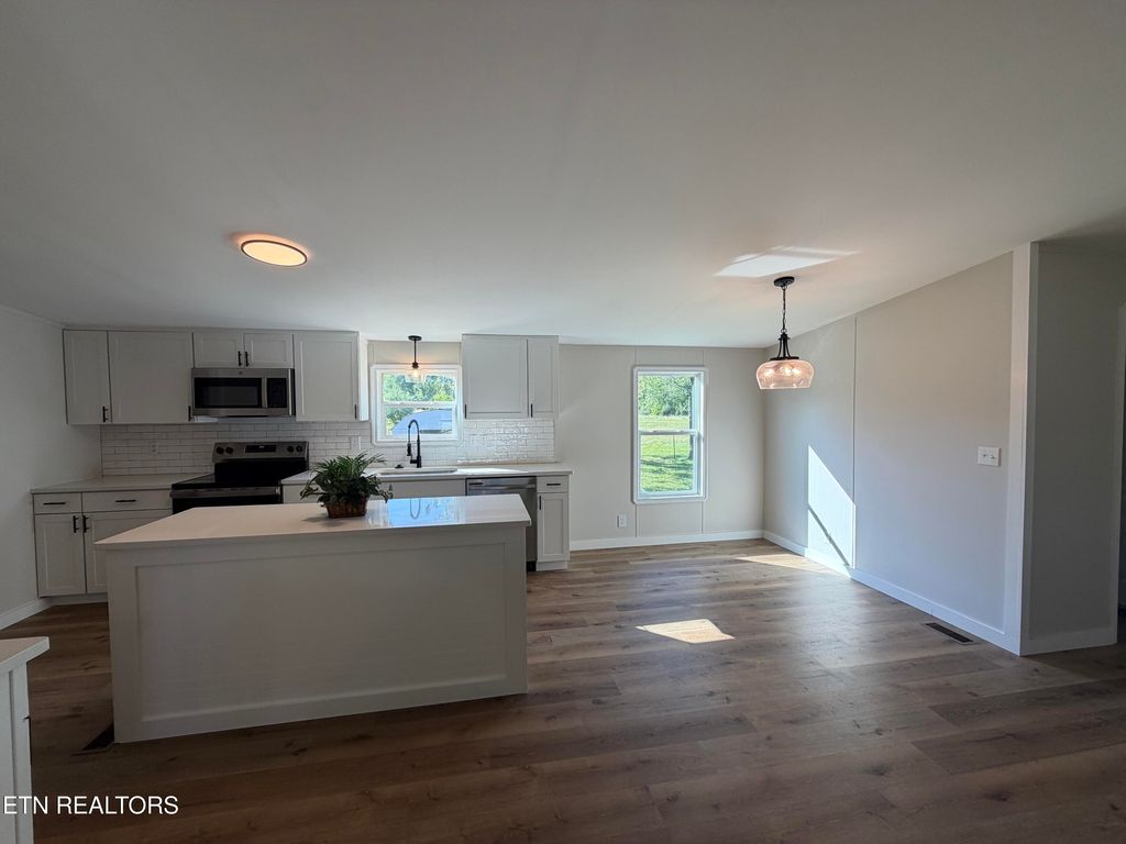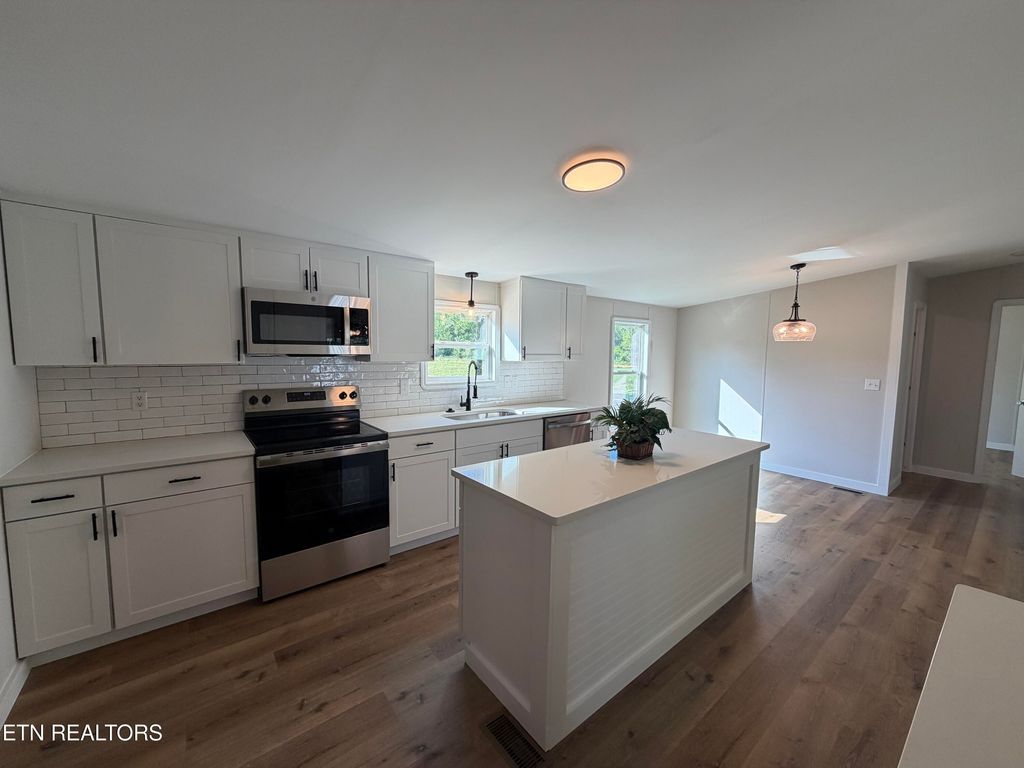 Completely renovated 3BR/2BA home in Powell, conveniently located near schools, shopping, and medical facilities. Features an open floor plan with all new appliances, cabinets, countertops, and vanities. Kitchen includes tile backsplash, island, and eat-in dining area. Spacious master suite with walk-in closet and double vanity. New covered front porch with wrought iron spindles and new back deck. Level backyard with storage shed and professional landscaping. Concrete driveway with turnaround. Move-in ready.