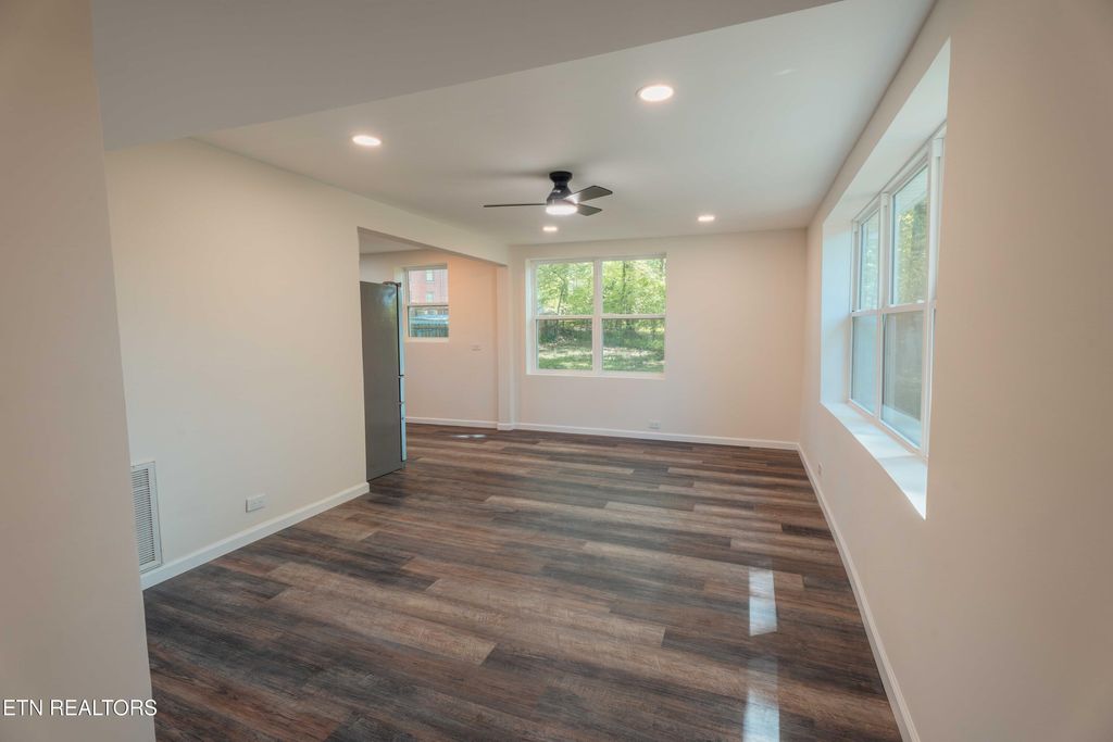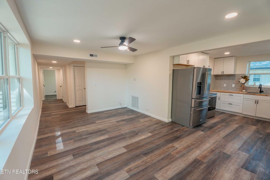 Move-in ready and centrally located, this 3-bedroom, 2-bath is one of the best homes for sale in Oak Ridge TN. New drywall, paint, electrical, flooring, insulation, windows, kitchen cabinet, bathroom vanity and fixtures, and appliances. Set within an established neighborhood, this 980 sq ft fully renovated property features a fully fenced yard with gated access from the street. Walking up, the fenced yard creates a defined outdoor space before entering the home. Inside, the living room flows into the kitchen, with access to a laundry area and rear exit. Just off the main entry, a large coat closet leads to the hallway connecting all three bedrooms and a full bath. The primary bedroom is positioned at the front of the hall and offers generous space. Conveniently located approximately 5 minutes to downtown Oak Ridge, 2 minutes to the Oak Ridge Children's Museum and local parks, and about 25-30 minutes to Knoxville and the University of Tennessee, with easy access to major employers, shopping, dining, and East Tennessee amenities. Buyer to verify all information.