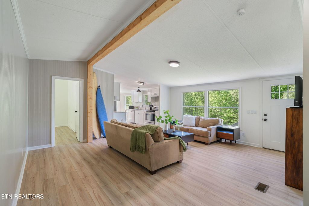 Inside, you'll find a bright, refreshed interior with updated finishes and a functional layout designed for everyday living. The white kitchen feels clean and inviting, while the living spaces offer a comfortable flow for both daily life and gathering with family or friends.