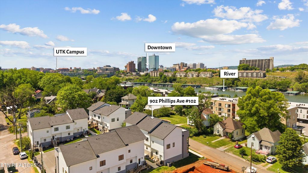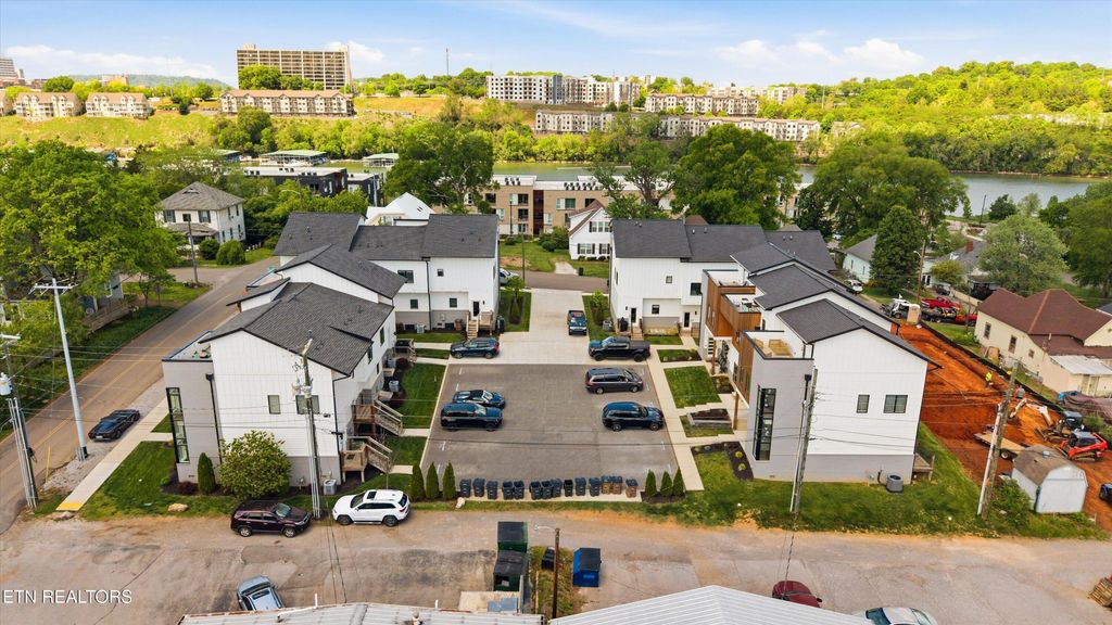 The third level provides incredible flexibility with a bonus room, office space, unfinished storage, and direct access to a rooftop porch. Enjoy beautiful views of the water and Downtown Knoxville--perfect for relaxing or entertaining.