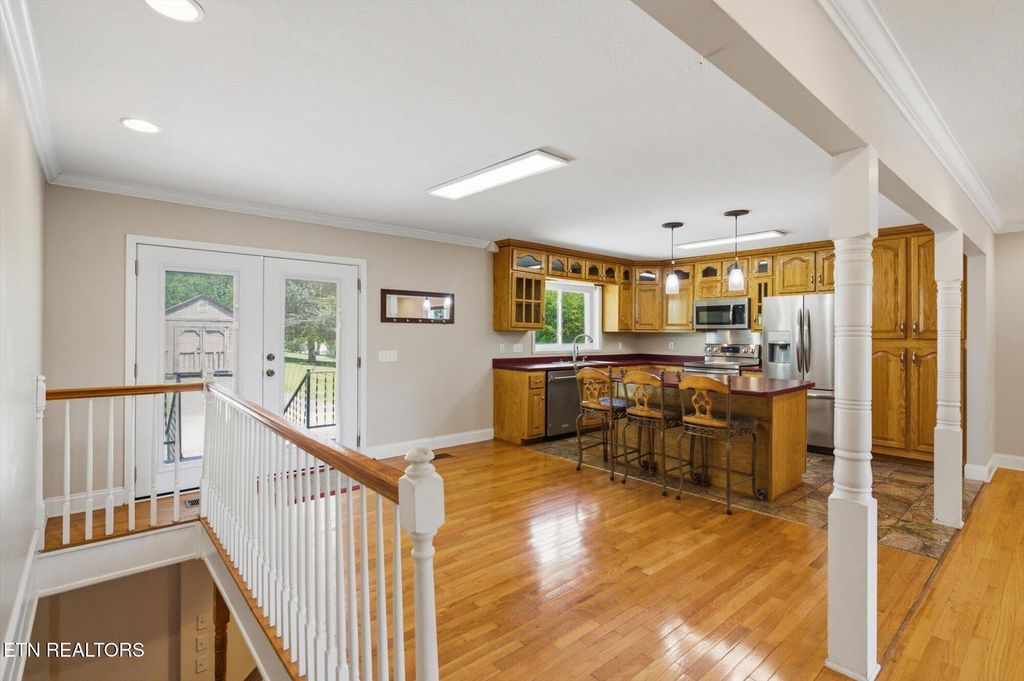This charming 2,668 square foot brick basement rancher brings together classic charm and modern flexibility on a peaceful .41 acre lot in Sweetwater. From the moment you step inside, the home feels bright and welcoming, anchored by a signature circular window in the living room that pours in natural light and adds an extra touch of character. The open main level features gleaming hardwood floors that transition into durable tile in the kitchen and updated bathroom, perfectly blending warmth with everyday durability. The kitchen is designed to keep up with real life, featuring a central island, abundant workspace, and a layout that flows effortlessly for morning routines or gathering with friends. Downstairs, the full walk-out basement is a true game-changer. Finished with sleek polished concrete floors and a cozy natural gas fireplace, this massive space includes a large lower-level great room, bedroom area, a full bathroom, a walk-in closet and the laundry room. Whether you need a private guest suite, a second living quarters, or a multi-generational setup, this flexible lower level delivers. You can move in with total confidence thanks to a list of thoughtful updates, including a newer HVAC system and water heater, custom closet shelving, updated French doors, and distinctive circular windows that give the home its one-of-a-kind charm. The outdoor space is just as functional as the interior, featuring a unique circular driveway that wraps around to the back of the home for effortless access and plenty of parking. Complete with a covered two-car carport, a storage shed, a fun playset, and a relaxing patio area overlooking the lawn, this home offers a perfect balance of distinctive style and everyday versatility in a Sweetwater setting that simply feels like it's where you belong.