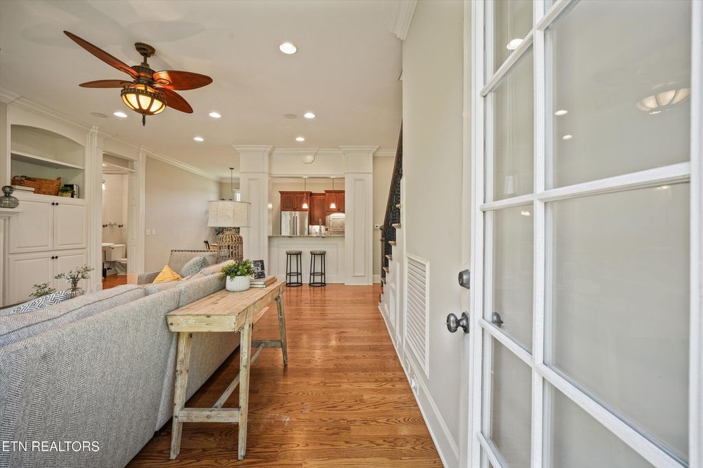 Tucked in the heart of Farragut, this exceptional all-brick home offers the perfect balance--minutes from everything West Knoxville has to offer, yet quietly set in one of the area's most sought-after neighborhoods where it truly feels like a retreat. With nearly 6,000 square feet and room to grow, this thoughtfully designed home features 5 spacious bedrooms and 5.5 bathrooms, including a luxurious primary suite on the main level. The open floor plan is ideal for both everyday living and entertaining, highlighted by gorgeous hardwood floors on the main and upper levels, extensive rich molding and wall treatments, and elegant rounded corners that add architectural character throughout. The main level also includes two dedicated office spaces, perfect for today's flexible lifestyle, along with a well-appointed butler's pantry and abundant built-in cabinetry. Upstairs and throughout the home, attention to detail shines in every finish. Downstairs, a fully separate apartment offers incredible versatility--perfect for guests, multigenerational living, or extended stays--complete with generous entertaining space. Step outside to a private paver patio surrounded by beautiful, mature landscaping, creating a peaceful outdoor escape. An oversized garage provides ample storage and convenience. And for a touch of charm and surprise--a hidden bookshelf door adds a unique and memorable feature you won't find just anywhere. Move-in ready and impeccably maintained, this home delivers space, style, and location in one truly remarkable package.