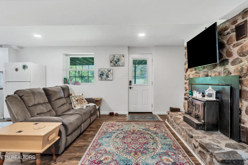 Enjoy a peaceful country setting on 3.74 picturesque acres in Greenback. This beautiful home has been extensively updated over the past 5 years. Almost everything is new, but there are a few projects left to complete. The main level offers 3 bedrooms and 3 full baths, along with a stunning stone fireplace with a wood-burning stove that creates a cozy focal point for the living space. The lower level features a 607 sq ft studio apartment with its own entrance and matching stone fireplace with wood-burning stove. It is ideal for rental income, guests, or a mother-in-law suite. The basement apartment can also be accessed from inside the basement. It has been a profitable Airbnb rental in the past and a wonderful guest suite for family and friends!